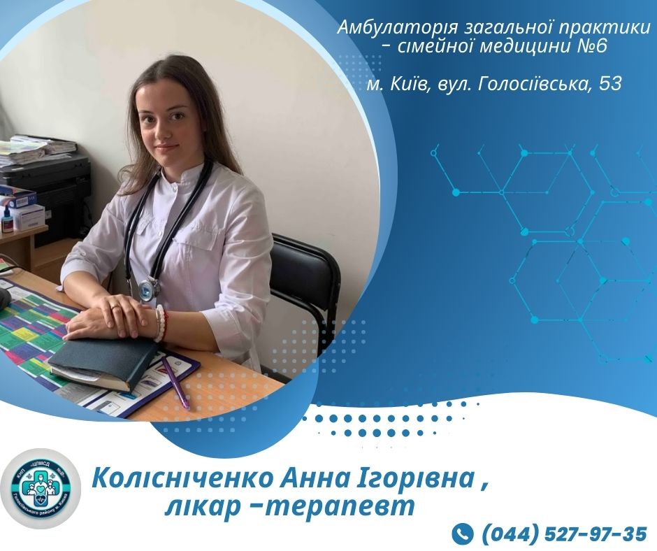 Колісніченко Анна Ігорівна, лікар – терапевт вищої категорії